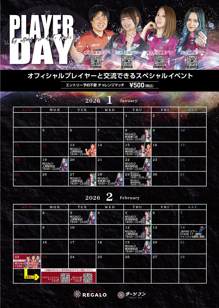 【1・2月イベント情報】プロ選手と交流できるスペシャルダーツタイム開催♪